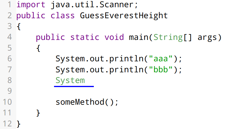 System.out.println("hello")(black).EXAMPLE 2