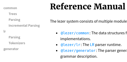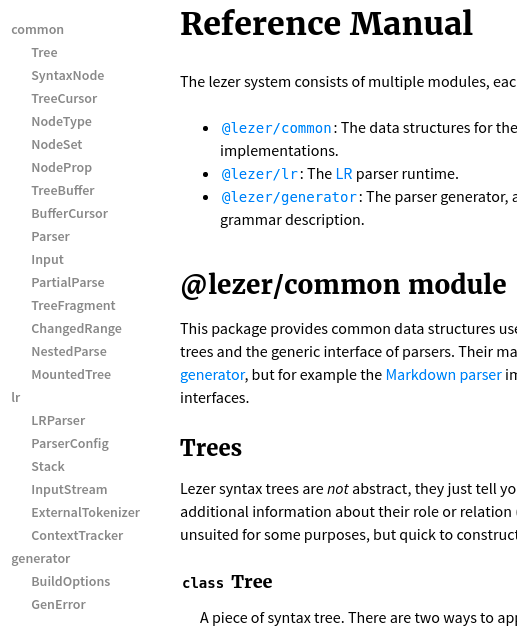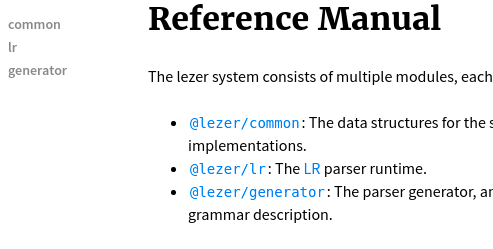 What might work is adding section headers to the doc templates and linking those, like on https://prosemirror.net/docs/ref/